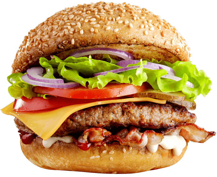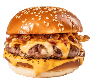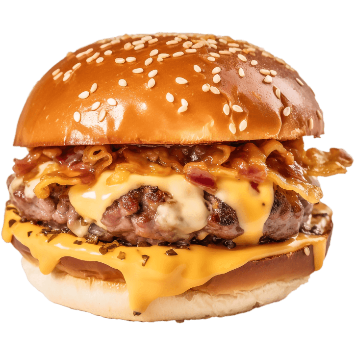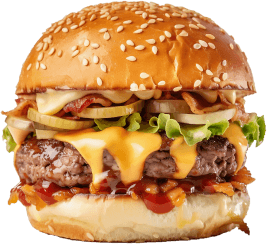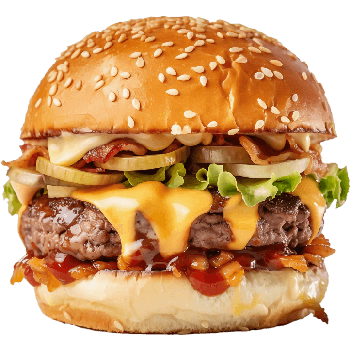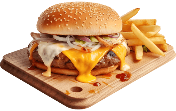 Indulge in a sesame bun burger, crispy French fries, and a tasty milkshake